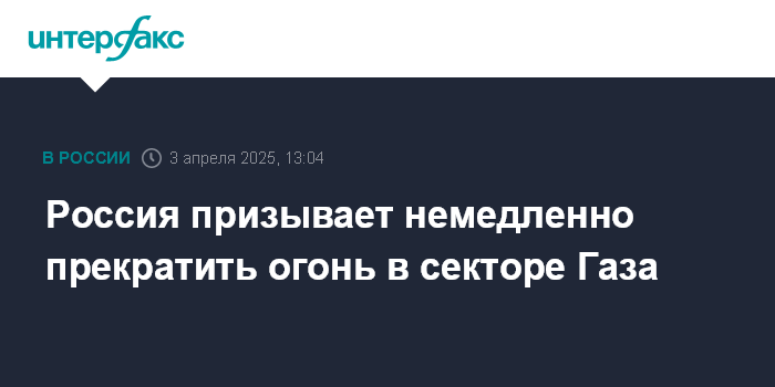 Москва. 3 апреля. INTERFAX.RU - Россия высказалась за незамедлительное прекращение огня в секторе Газа и освобождение всех удерживаемых лиц.