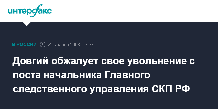 "Приказ о моем увольнении считаю незаконным и необоснованным, в связи с чем я намерен обжаловать его в установленном законом порядке", - заявил Довгий "Интерфаксу", добавив, что "в Следственном комитете сложилась крайне нездоровая ситуация, которая требует незамедлительного вмешательства президента РФ".