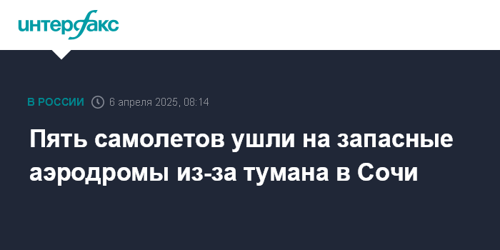 Ранее сообщалось, что с 3 апреля в Сочи из-за тумана не смогли сесть несколько самолетов. Они отправлялись на запасные аэродромы и возвращались в аэропорт назначения, когда туман рассеивался.