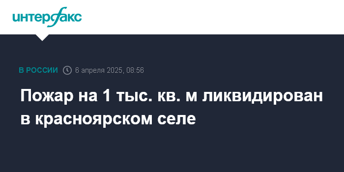 Москва. 6 апреля. INTERFAX.RU - Ликвидирован пожар, охвативший накануне около 1 тыс. кв. м в селе Калиновка в Красноярском крае, сообщает ГУ МЧС России по региону.