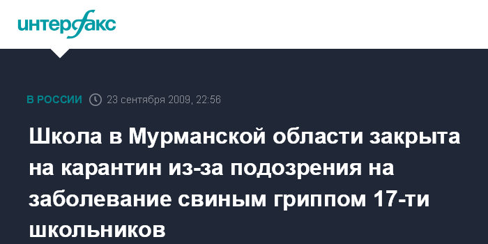 Школа в Мурманской области закрыта на карантин из-за подозрения на заболевание свиным гриппом 17-ти школьников