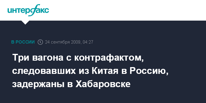 Как сообщили агентству "Интерфакс-Дальний Восток" в четверг в пресс-службе ведомства, по прибытию на станцию Хабаровск-1 почтово-багажного поезда сообщением Владивосток - Москва милиционеры провели проверку, в ходе которой в трёх вагонах был обнаружен груз из Китая, не имеющий соответствующих документов.