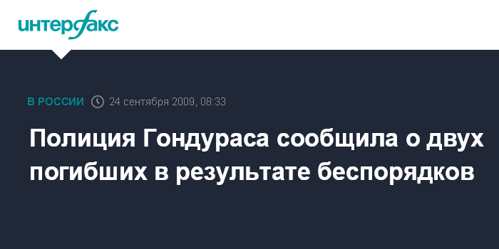 Москва. 24 сентября. INTERFAX.RU - Два человека погибли в результате беспорядков, начавшихся в Гондурасе после возвращения свергнутого президента Мануэля Селайи, сообщили в местных правоохранительных органах.