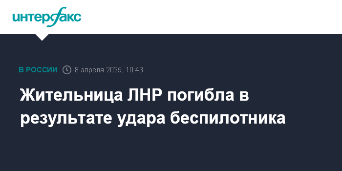 Москва. 8 апреля. INTERFAX.RU - Ударный беспилотник вооруженных сил Украины атаковал гражданский автомобиль в Троицком муниципальном округе Луганской народной республики, в результате погибла 60-летняя женщина, сообщили в региональном правительстве.