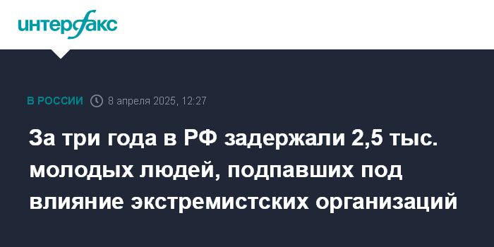 За три года в РФ задержали 2,5 тыс. молодых людей, подпавших под влияние экстремистских организаций