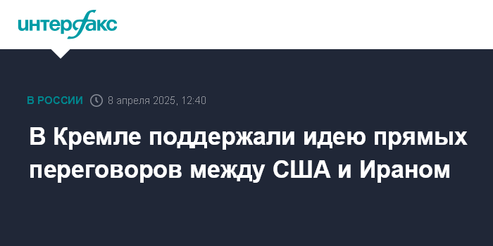 Москва. 8 апреля. INTERFAX.RU - В Москве поддерживают инициативу проведения прямых переговоров между Вашингтоном и Тегераном по урегулированию иранской ядерной проблемы, заявил пресс-секретарь президента РФ Дмитрий Песков.