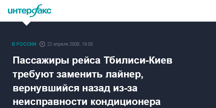Пассажиры рейса Тбилиси-Киев требуют заменить лайнер, вернувшийся назад из-за неисправности кондиционера