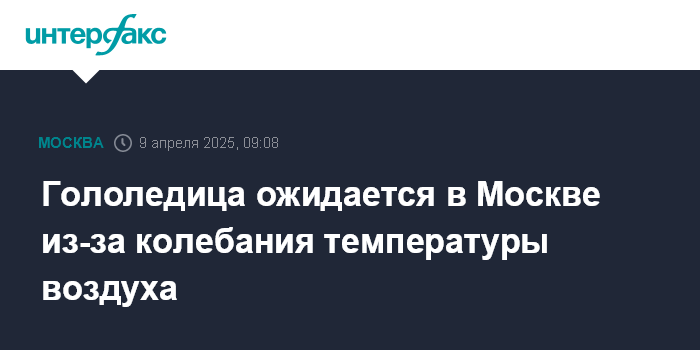 Москва. 9 апреля. INTERFAX.RU - Колебания температуры между положительными и отрицательными значениями, а также усиление ветра с порывами до 14 м/с в Москве в среду могут привести к образованию гололедицы, сообщает пресс-служба столичного комплекса городского хозяйства.