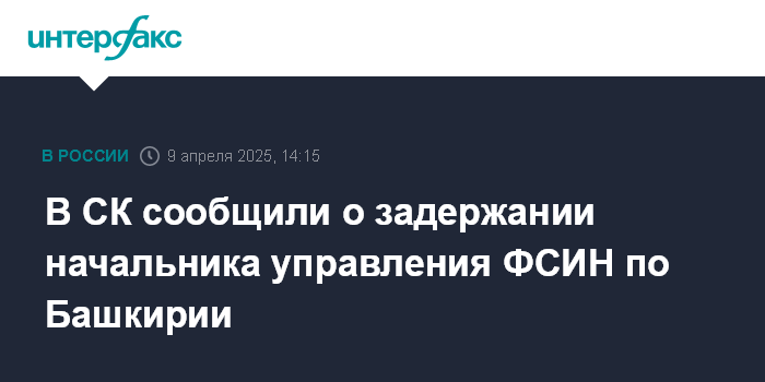 В СК сообщили о задержании начальника управления ФСИН по Башкирии