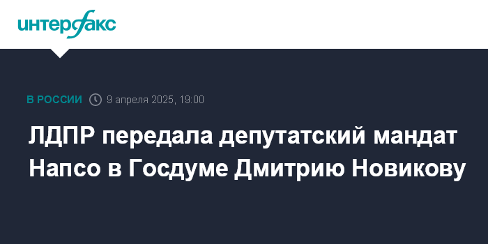 ЛДПР передала депутатский мандат Напсо в Госдуме Дмитрию Новикову