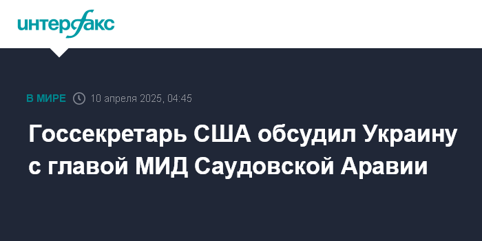 Москва. 10 апреля. INTERFAX.RU - Госсекретарь США Марко Рубио провел в Вашингтоне встречу с главой МИД Саудовской Аравии Фейсалом бен Фарханом аль Саудом, сообщили в американском госдепартаменте.