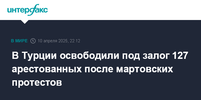 Москва. 10 апреля. INTERFAX.RU - В Стамбуле суды отпустили под залог 127 человек, которые были задержаны после демонстраций в поддержку удерживаемого под стражей мэра Стамбула Экрема Имамоглу, сообщает AP.