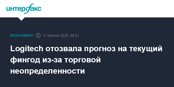 Москва. 11 апреля. INTERFAX.RU - Logitech International SA, выпускающая оборудование компьютерной периферии (клавиатуры, мыши, колонки и т.д.), отозвала прогноз на текущий финансовый год, отметив "неопределенность, связанную с торговыми пошлинами".