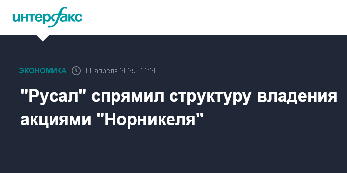 Москва. 11 апреля. INTERFAX.RU - "Русал" спрямил структуру владения пакетом акций "Норникеля" в результате реорганизации дочерних структур.