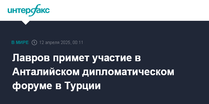 "12 апреля Сергей Лавров посетит Турцию по приглашению министра иностранных дел Турецкой Республики для участия в 4-м Анталийском дипломатическом форуме. В ходе мероприятия запланировано выступление главы российского внешнеполитического ведомства и проведение двусторонних встреч с иностранными коллегами. Предполагается обсудить ключевые аспекты международной повестки дня, в том числе положение дел на Ближнем Востоке, Северной Африке, Закавказье, Черноморском регионе, а также актуальные вопросы отношений с отдельными государствами", - сообщала ранее официальный представитель МИД РФ Мария Захарова.