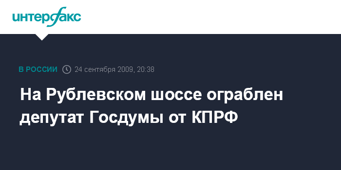 На Рублевском шоссе ограблен депутат Госдумы от КПРФ