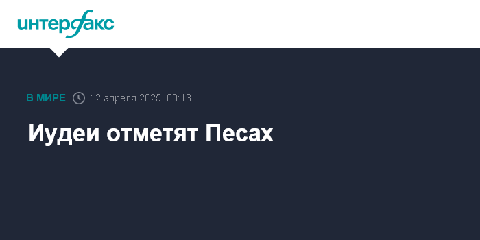 Москва. 12 апреля. INTERFAX.RU - Иудейский праздник Песах, установленный в память об исходе евреев из Египта, начнется в этом году на исходе субботы и продлится восемь дней - до ночи 20 апреля.