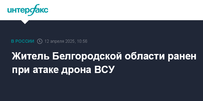 Москва. 12 апреля. INTERFAX.RU - Мирный житель пострадал при атаке украинского беспилотника в Белгородской области, сообщил губернатор Вячеслав Гладков.