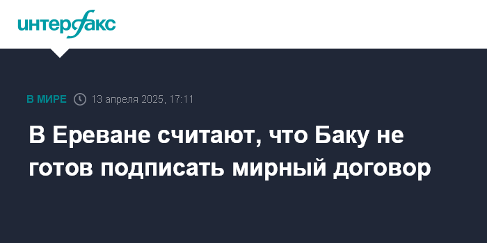 Москва. 13 апреля. INTERFAX.RU - Глава МИД Армении Арарат Мирзоян заявил, что со стороны Азербайджана не слышно о готовности подписать мирный договор.