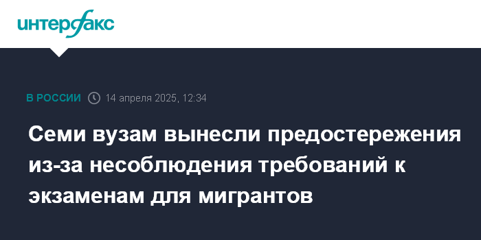Семи вузам вынесли предостережения из-за несоблюдения требований к экзаменам для мигрантов