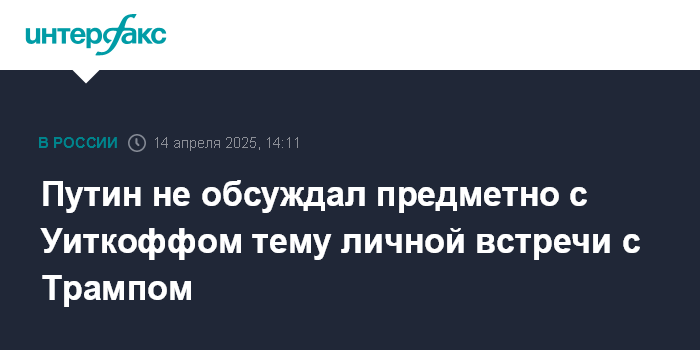 Путин не обсуждал предметно с Уиткоффом тему личной встречи с Трампом