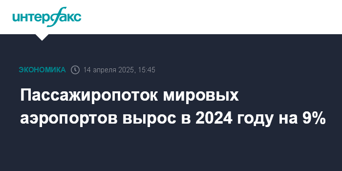 Москва. 14 апреля. INTERFAX.RU - Пассажиропоток мировых аэропортов в 2024 году увеличился на 9% и достиг 9,5 млрд человек, по предварительным данным Международного совета аэропортов (ACI).