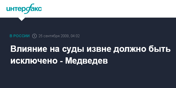 Питтсбург. 25 сентября. ИНТЕРФАКС - Президент России Дмитрий Медведев заявил, что в стране должна быть создана такая система, когда любое давление на суды будет невозможным.