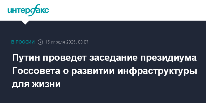 Путин проведет заседание президиума Госсовета о развитии инфраструктуры для жизни