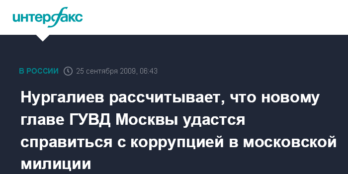 Нургалиев рассчитывает, что новому главе ГУВД Москвы удастся справиться с коррупцией в московской милиции