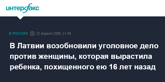 В Латвии возобновили уголовное дело против женщины, которая вырастила ребенка, похищенного ею 16 лет назад