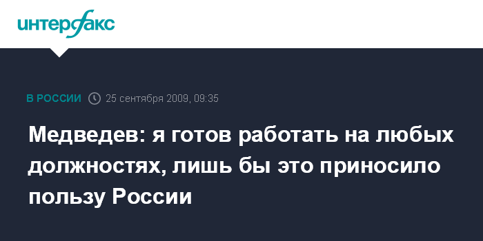 Медведев: я готов работать на любых должностях, лишь бы это приносило пользу России