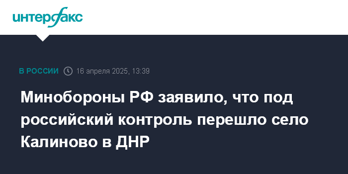Минобороны РФ заявило, что под российский контроль перешло село Калиново в ДНР