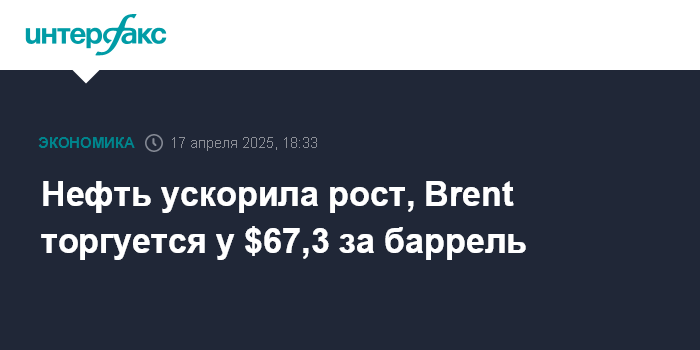 Нефть ускорила рост, Brent торгуется у $67,3 за баррель