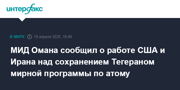 МИД Омана сообщил о работе США и Ирана над сохранением Тегераном мирной программы по атому