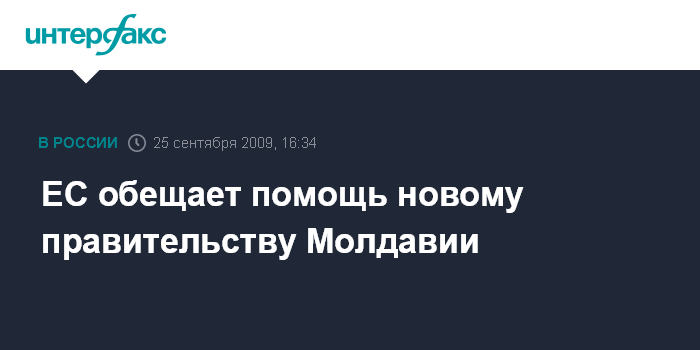 Брюссель. 25 сентября. INTERFAX.RU - Европейский Союз приветствовал формирование нового правительства Молдавии и обещал помочь ему выйти из финансово-экономического кризиса и продвигать реформы.