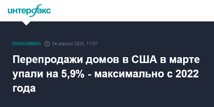 Перепродажи домов в США в марте упали на 5,9% - максимально с 2022 года