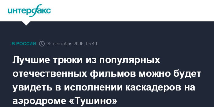 Лучшие трюки из популярных отечественных фильмов можно будет увидеть в исполнении каскадеров на аэродроме «Тушино»