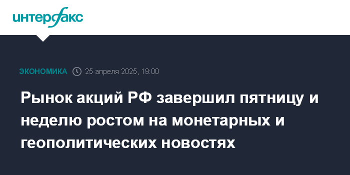 Рынок акций РФ завершил пятницу и неделю ростом на монетарных и геополитических новостях