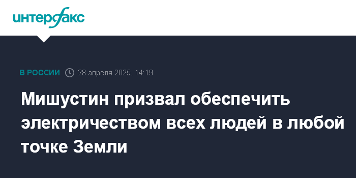 Москва. 28 апреля. INTERFAX.RU - Премьер-министр Михаил Мишустин считает доступность электричества одной из главных глобальных проблем, которая требует решения.