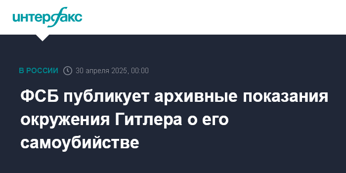 ФСБ публикует архивные показания окружения Гитлера о его самоубийстве