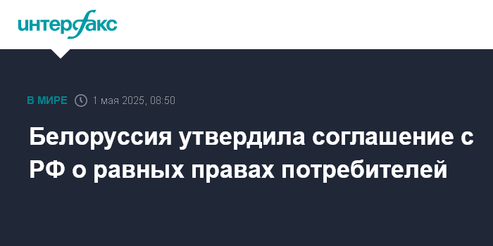 "Утвердить соглашение между Правительством Республики Беларусь и Правительством Российской Федерации по обеспечению равных прав потребителей, подписанное в г. Москве 13 марта 2025 года", - говорится в документе.