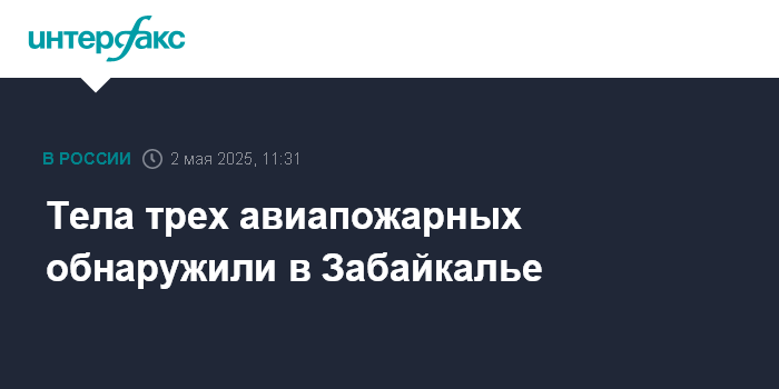 Москва. 2 мая. INTERFAX.RU - Найдены тела трех пропавших 23 апреля в Тунгокоченском округе Забайкальского края пожарных-десантников, сообщает региональное министерство природных ресурсов в пятницу.