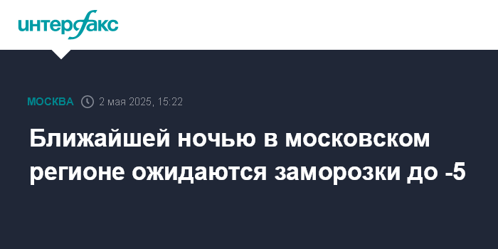 Москва. 2 мая. INTERFAX.RU - Заморозки до -5 градусов прогнозируются в Московской области в ближайшую ночь, при этом к полудню субботы воздух в московском регионе прогреется до +14 градусов, сообщил "Интерфаксу" научный руководитель Гидрометцентра России Роман Вильфанд.