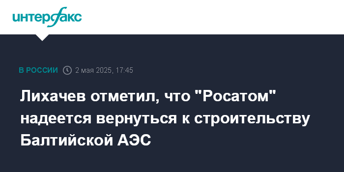 Лихачев отметил, что "Росатом" надеется вернуться к строительству Балтийской АЭС