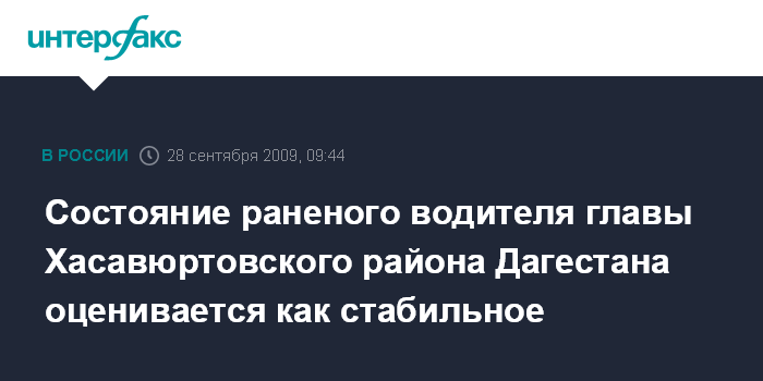 Состояние раненого водителя главы Хасавюртовского района Дагестана оценивается как стабильное