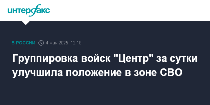 Москва. 4 мая. INTERFAX.RU - Группировка войск "Центр" за сутки улучшила положение в зоне спецоперации, сообщило Минобороны России в воскресенье.