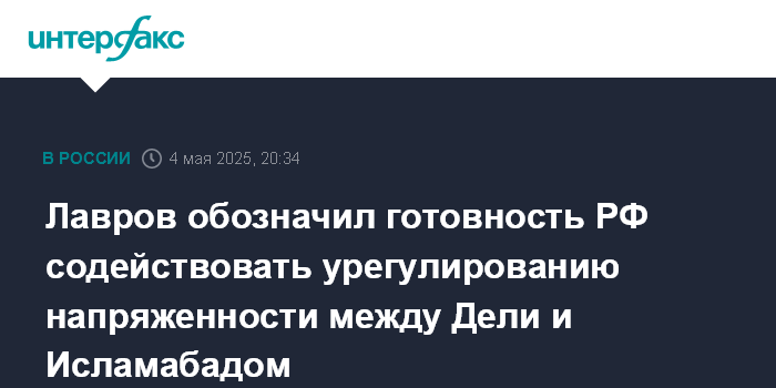 Лавров обозначил готовность РФ содействовать урегулированию напряженности между Дели и Исламабадом