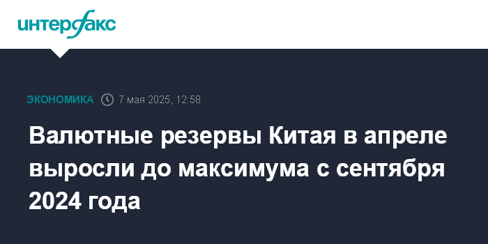 Валютные резервы Китая в апреле выросли до максимума с сентября 2024 года