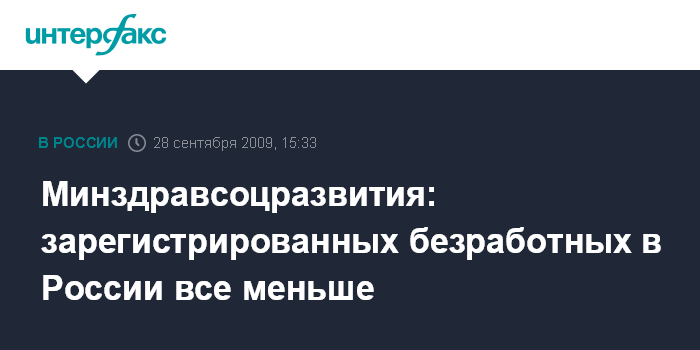Минздравсоцразвития: зарегистрированных безработных в России все меньше