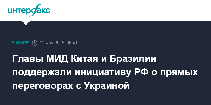 Главы МИД Китая и Бразилии поддержали инициативу РФ о прямых переговорах с Украиной